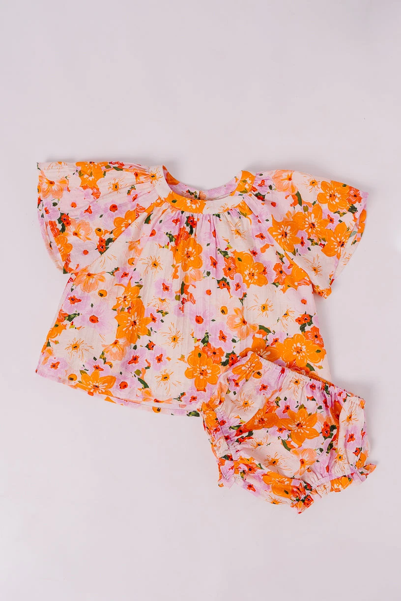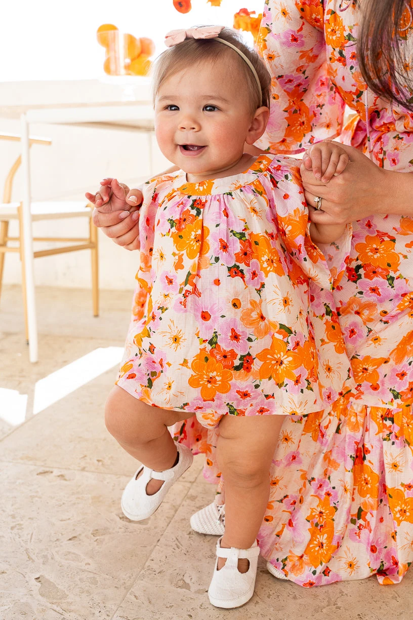 cream and multicolor floral dress + bloomers