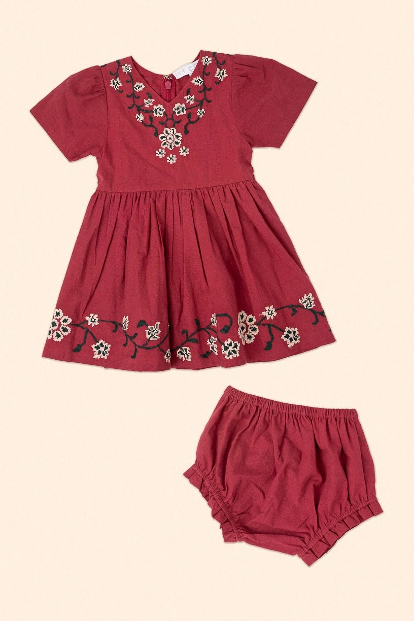 Baby Heidi Dress Set In Maroon – FINAL SALE