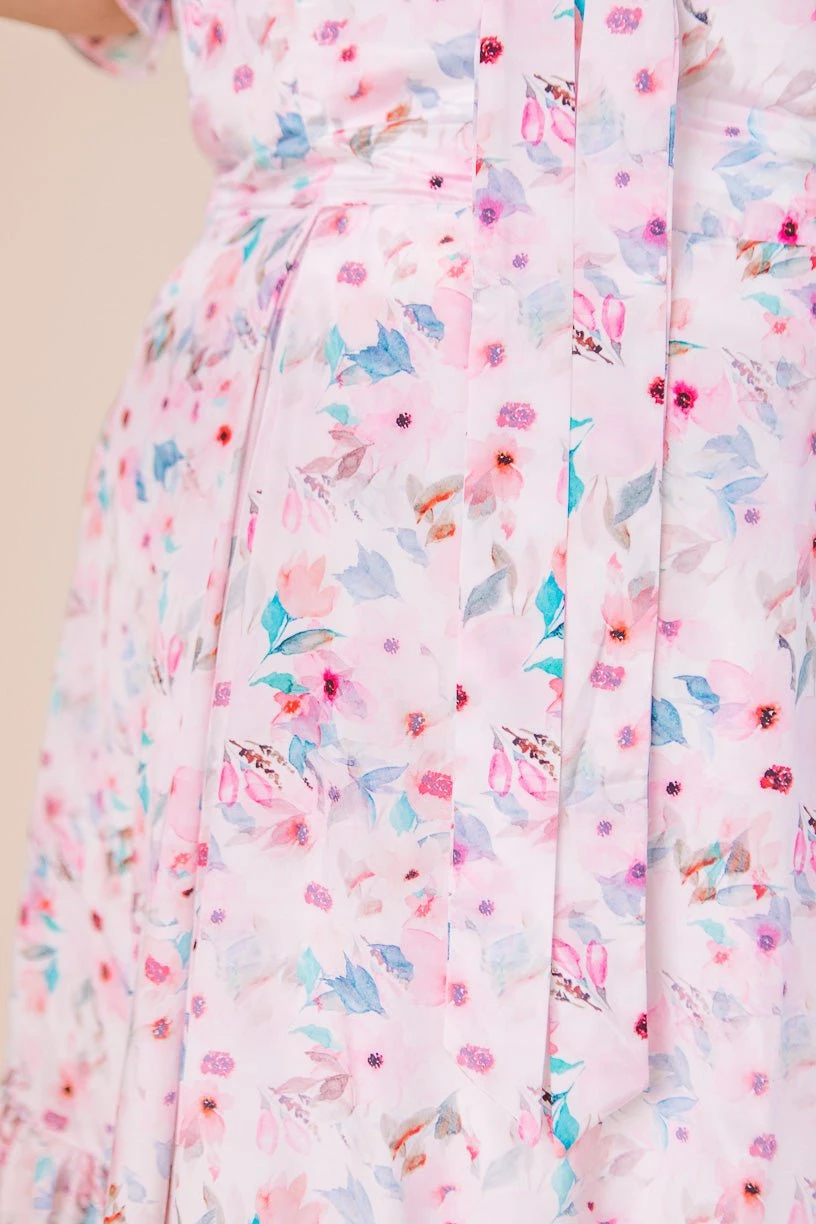 pink floral knee length dress