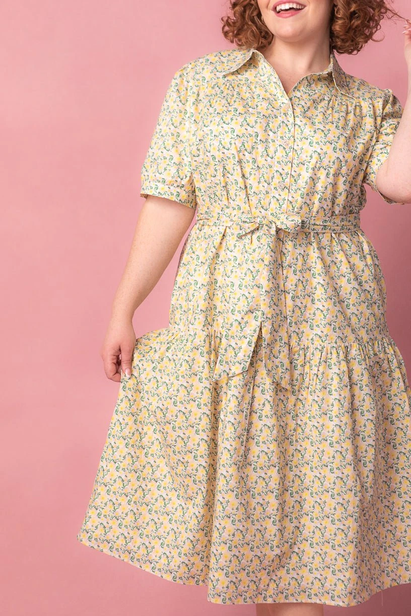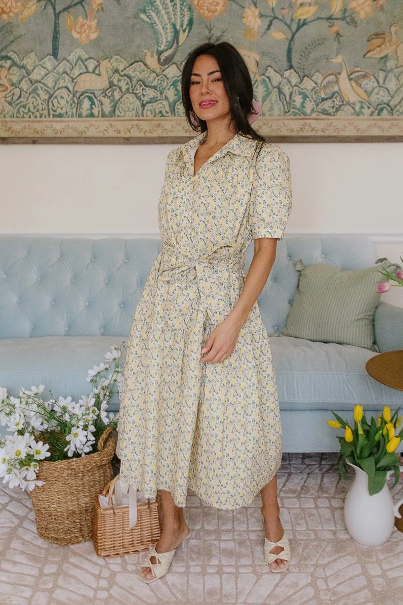 yellow cotton collared midi dress
