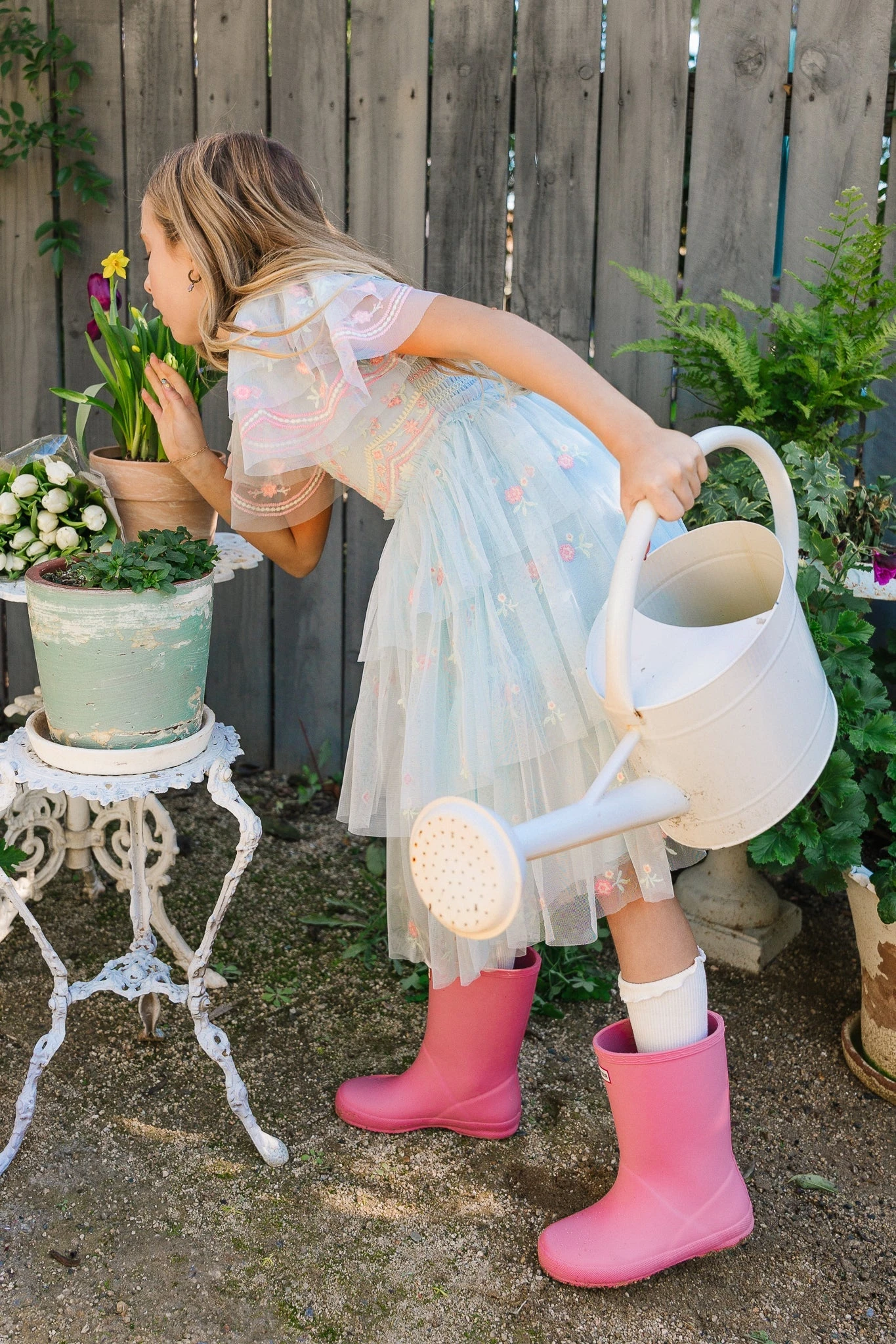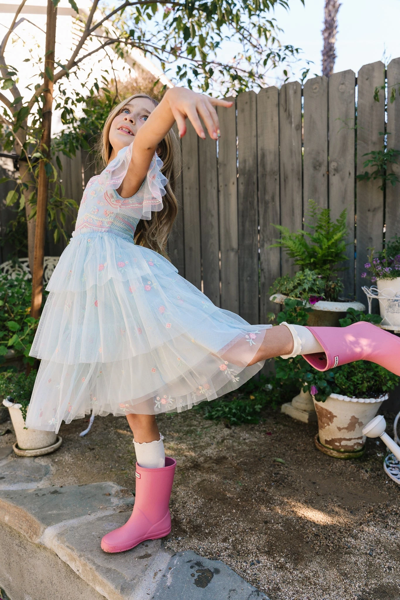 blue tulle midi dress