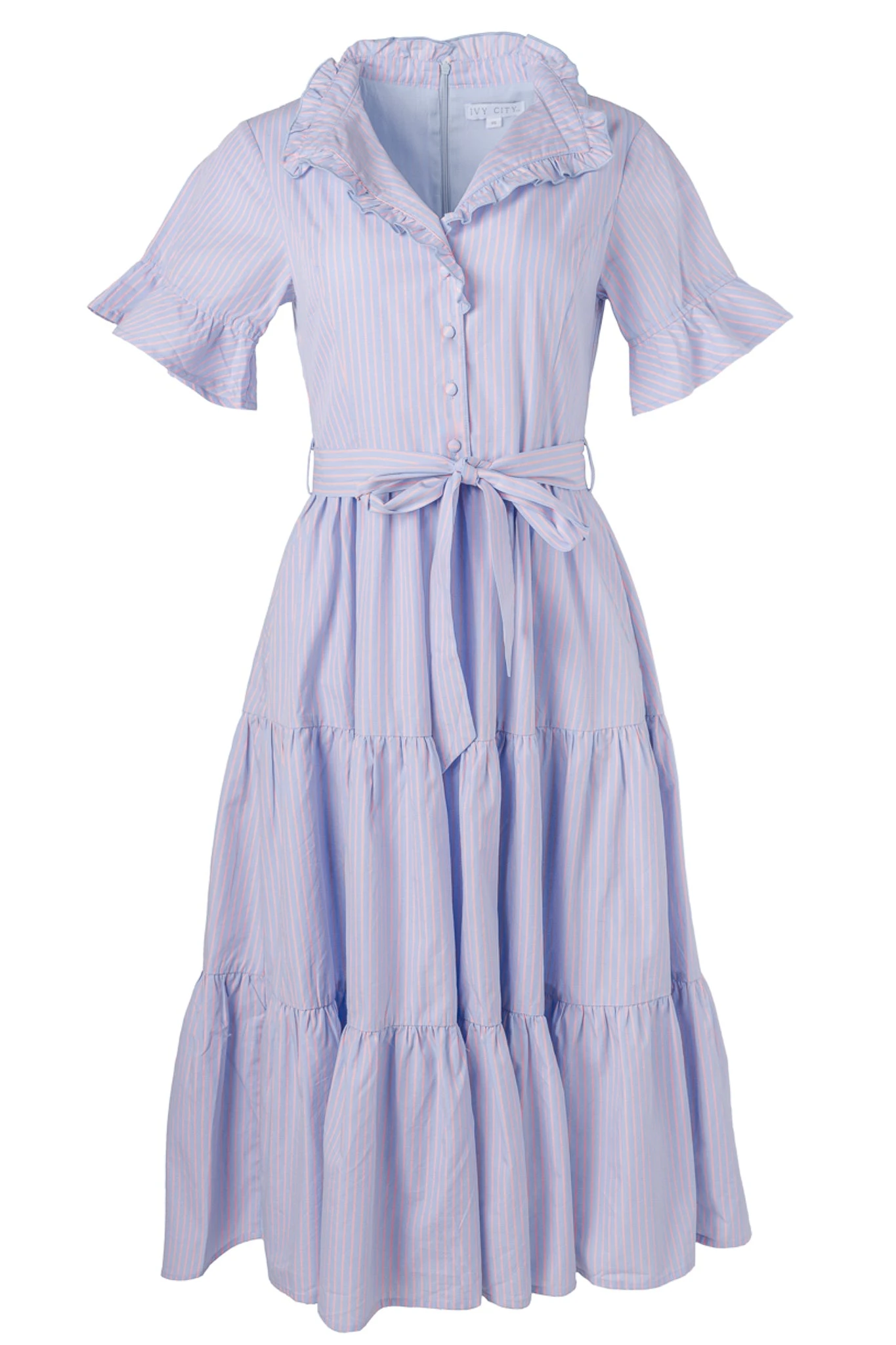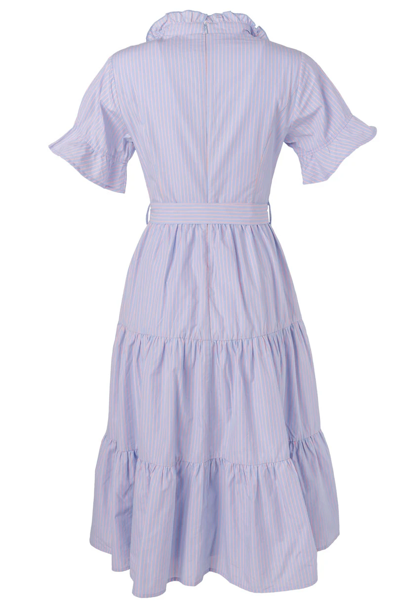 blue and pink striped cotton midi dress
